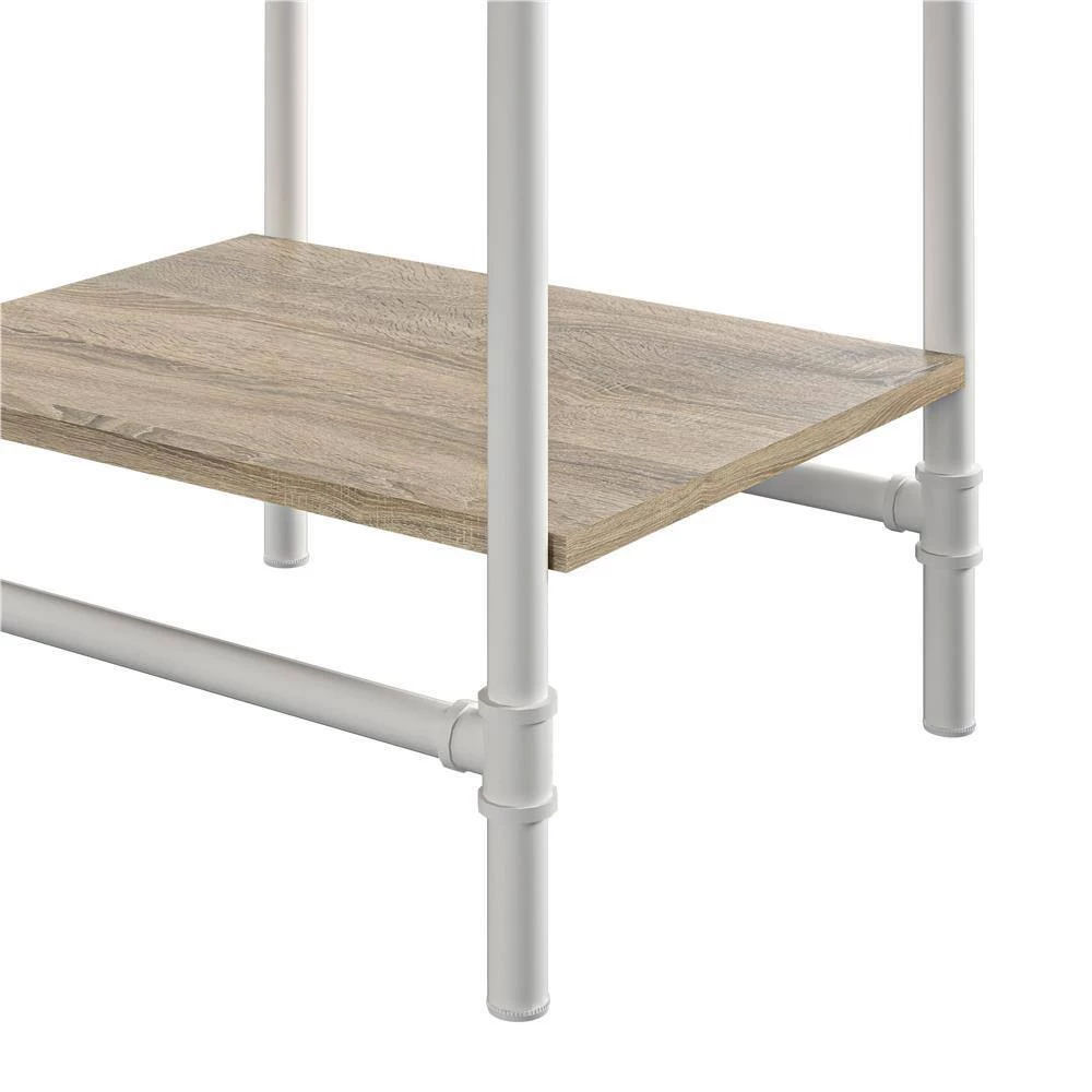- The light brown woodgrain finish goes with the black powder-coated metal legs for a mix of rustic and industrial styles that is enhanced by the metal pipe look of the legs