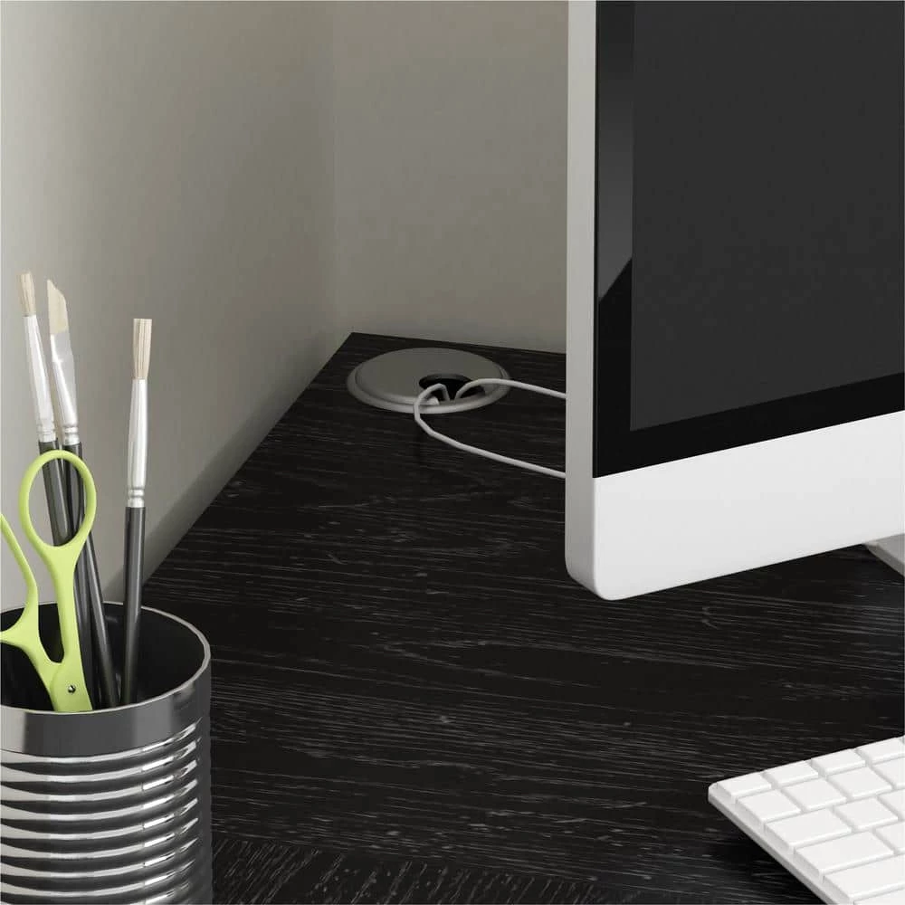 - Desk features a large top surface, extra side storage and grommet holes to keep your cords tangle free