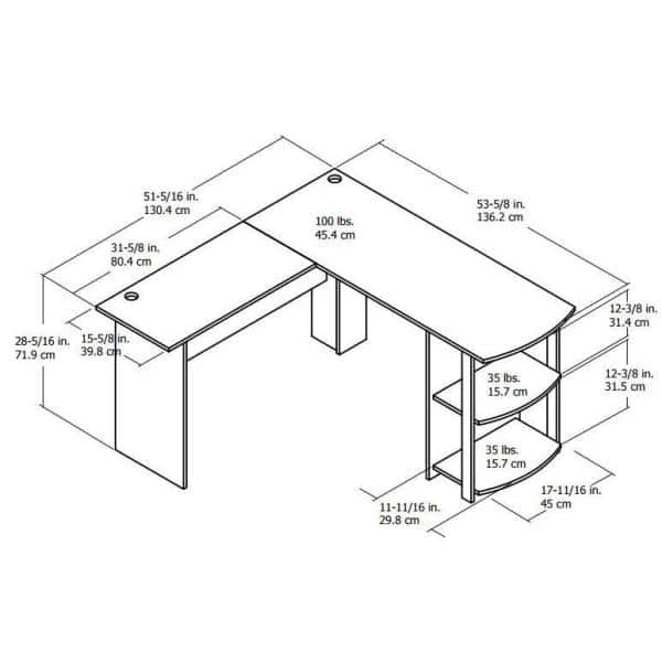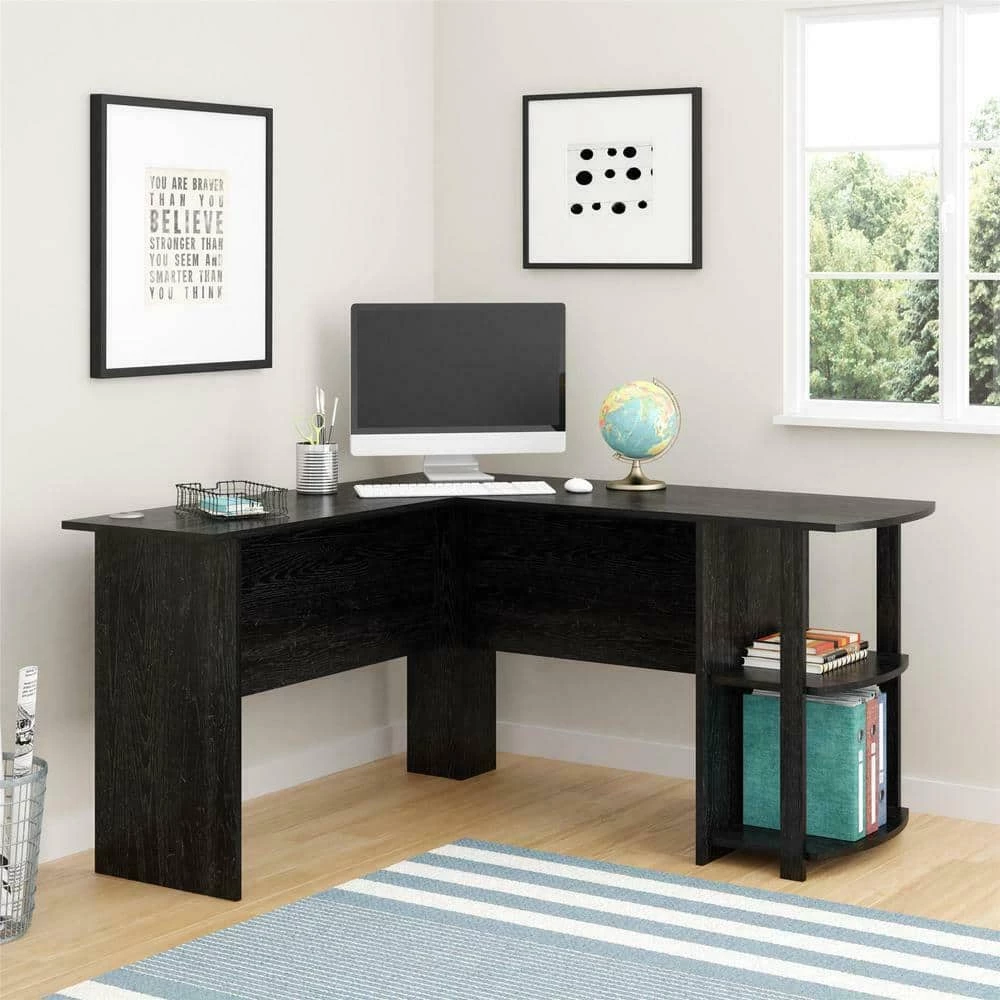 Create the perfect office space with the Ameriwood Home Quincy L-Shaped Desk with Bookshelves. This Desk fits snuggly in a corner to maximize your home office space. The large desk top surface provides plenty of room for your monitor or laptop, as well as papers and other essential office supplies. The L-Shaped Desk even has 2-grommets built into the Desk to organize and manage your cords. 2-open shelves on the side of the desk provide a perfect home for your binders and books, but keeps them within easy reach.