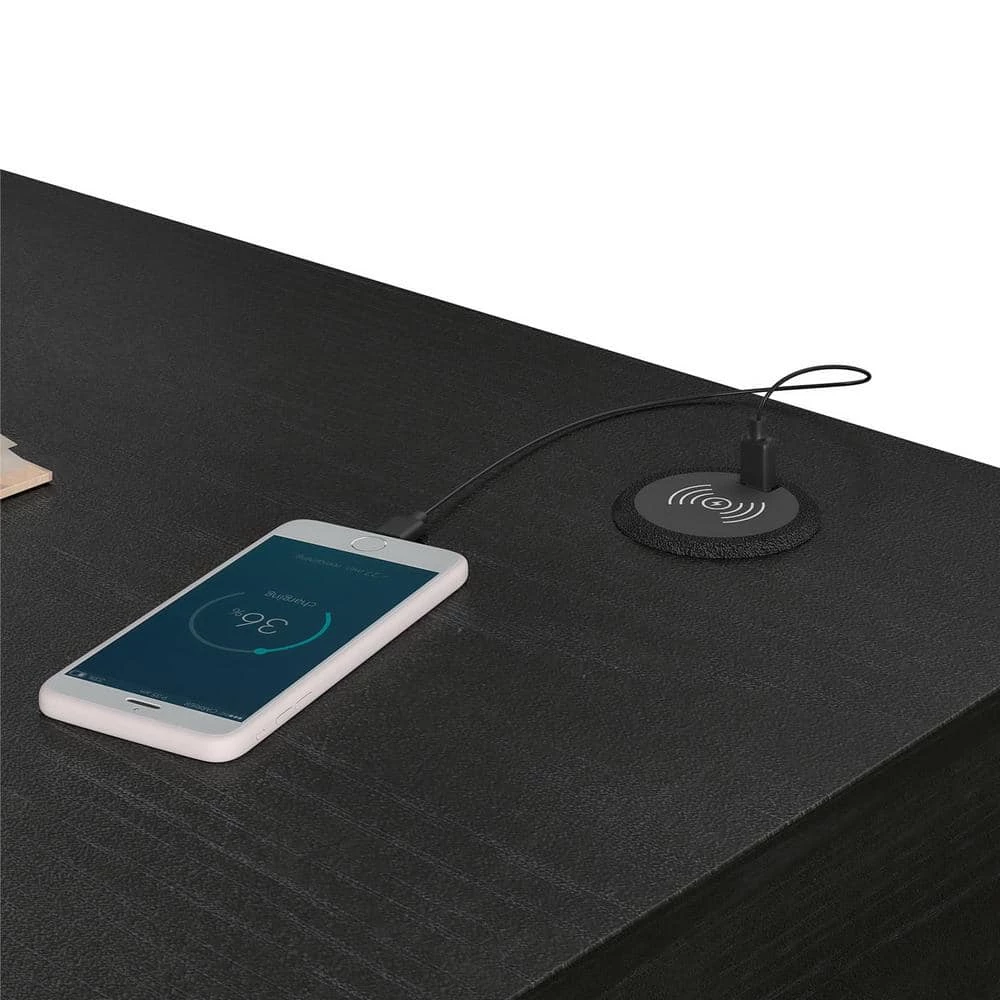 - Spacious desktop can hold your laptop and printer and features a wireless charger to keep your QI-enabled electronics powered up without the hassle of cords, built in USB port option allows you to charge your electronics even if they are not QI-enabled