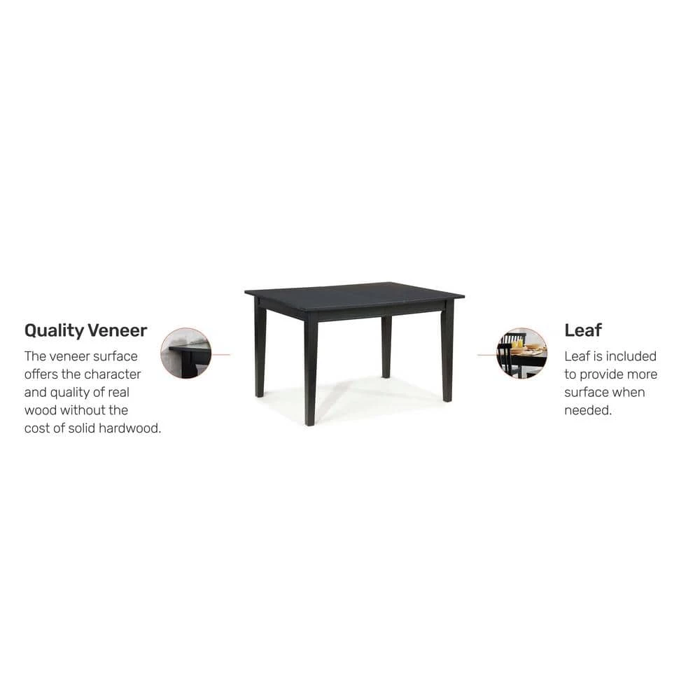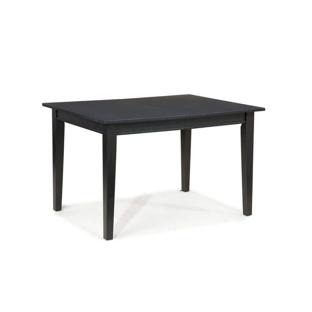 Home Styles Arts and Crafts Dining Table features a solid hardwood construction in a rich ebony finish. Table is 66 inch wide with the 18 inch leaf and 48 inch wide without the leaf. Table Size: 66w 36d 30h. Chairs are sold separately.