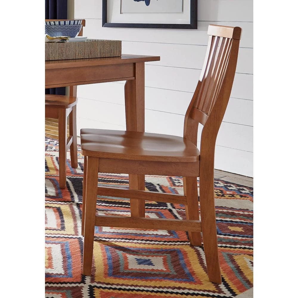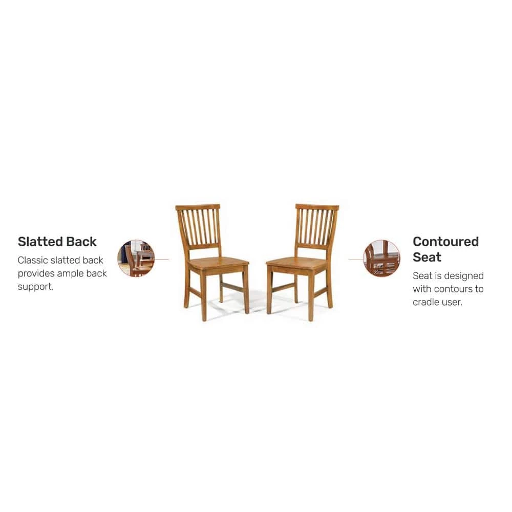 Home Styles Arts and Crafts Dining chairs, pair of 2, feature a solid hardwood construction. Chairs are sold in a two pack. Chair Size: 17.75 w 22.25 d 35.75 h.