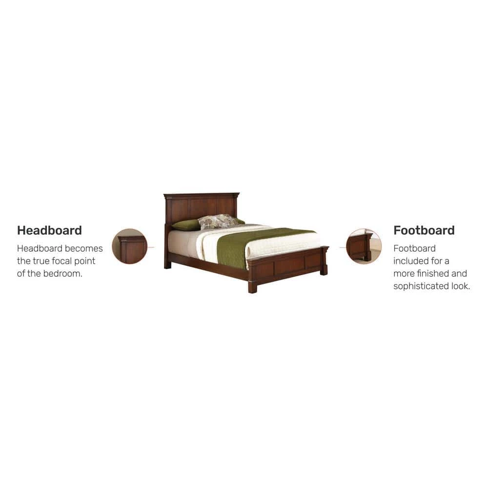 Create ambiance with a perfect balance of warmth and style with The Aspen Collection Bed by Home Styles. Mahogany solids and cherry veneers are warmed with a rustic cherry finish. The headboard and footboard encapsulate distinguished Americana style with bold recessed picture frame moldings and rich carved detailed posts. Assembly required.