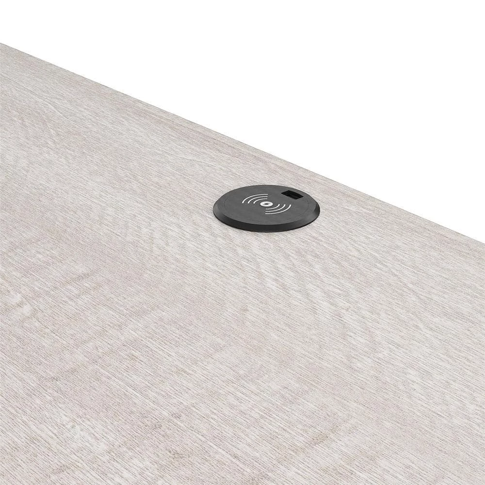 - Desktop can accommodate your laptop and printer and features a wireless charging spot with a usb port
