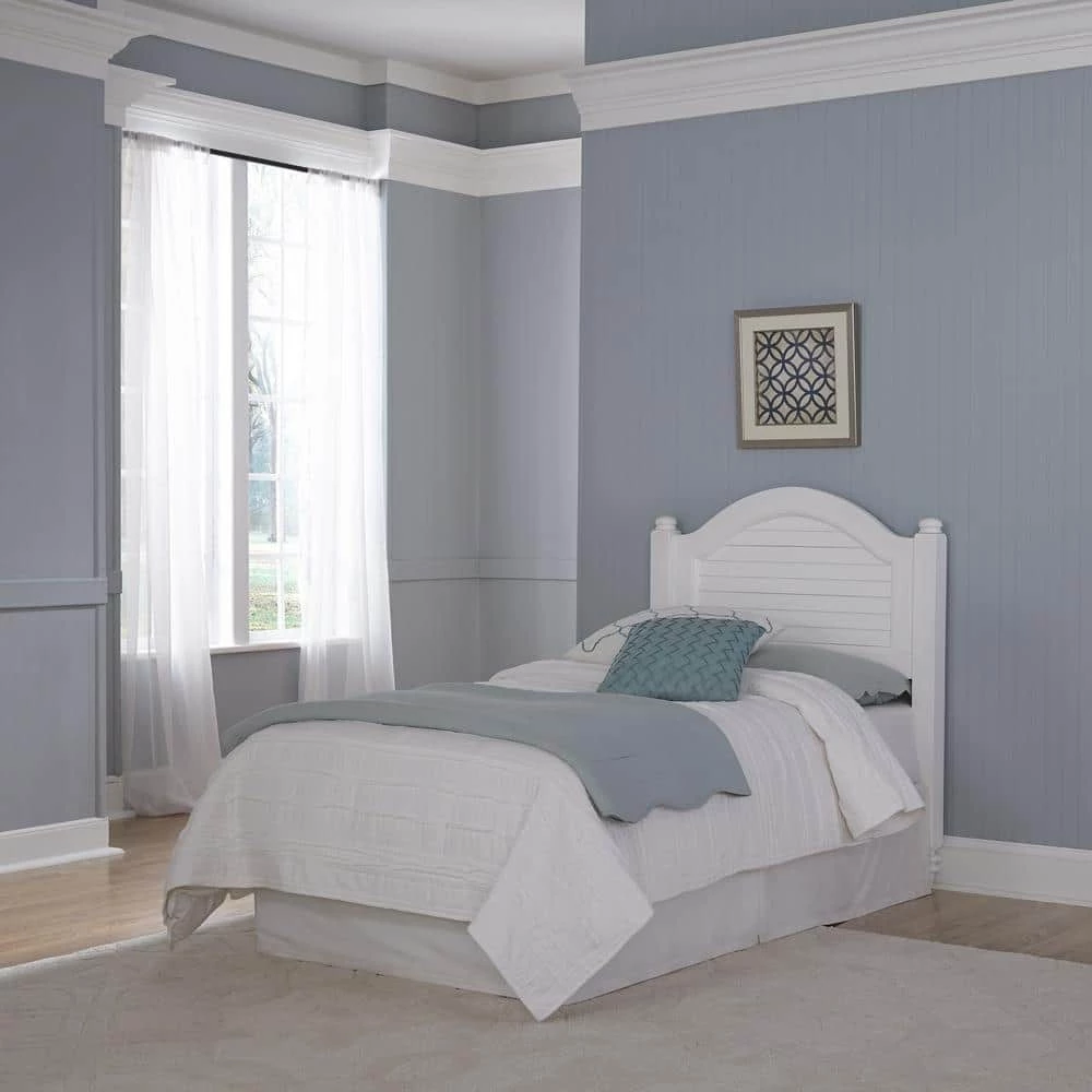 The peace and tranquility of the tropics. The Bermuda Collection tells a story of beauty and grace, with shutter-style details and a classic white finish. Design an idyllic island oasis. You can almost feel the cool island breeze sweep through your bedroom when you add this Homestyles Bermuda Twin Headboard. The horizontal slats are framed by a gently curved top that creates a fresh new look for any bedroom. Designed to fit any twin bed frame, this mahogany headboard is a truly timeless addition to your home.
