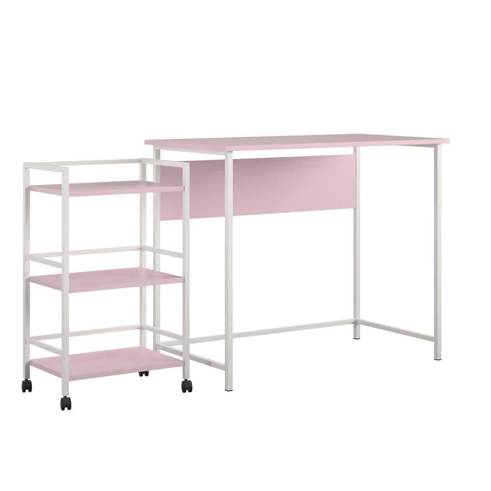Work from home, pay bills, or study for the big exam at the Ameriwood Home Bernay Desk with Rolling Cart. Perfect for smaller spaces, the Bernay Desk and rolling cart allows you to keep everything you need within reach while keeping your desktop clutter free. Store writing utensils, notebooks or files off to the side while at the desk, then roll them all away at the end of the day to tuck them discretely in a closet or out of sight. The modesty panel across the back of the desk allows for flexible room placement, not confining you to just the wall. The Bernay Desk is made of engineered wood and a metal frame and ships flat to your door in one box. Assembly required. Assembled desk measurements: 36 in. W x 20 in. D x 29.92 in. H Assembled cart measurements: 16.8 in. W x 11.42 in. D x 28.1 in. H Product assembled weight: 40.24 lbs.