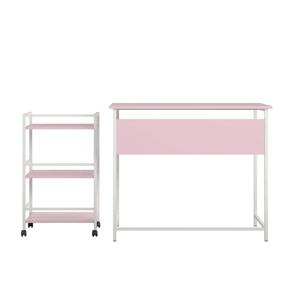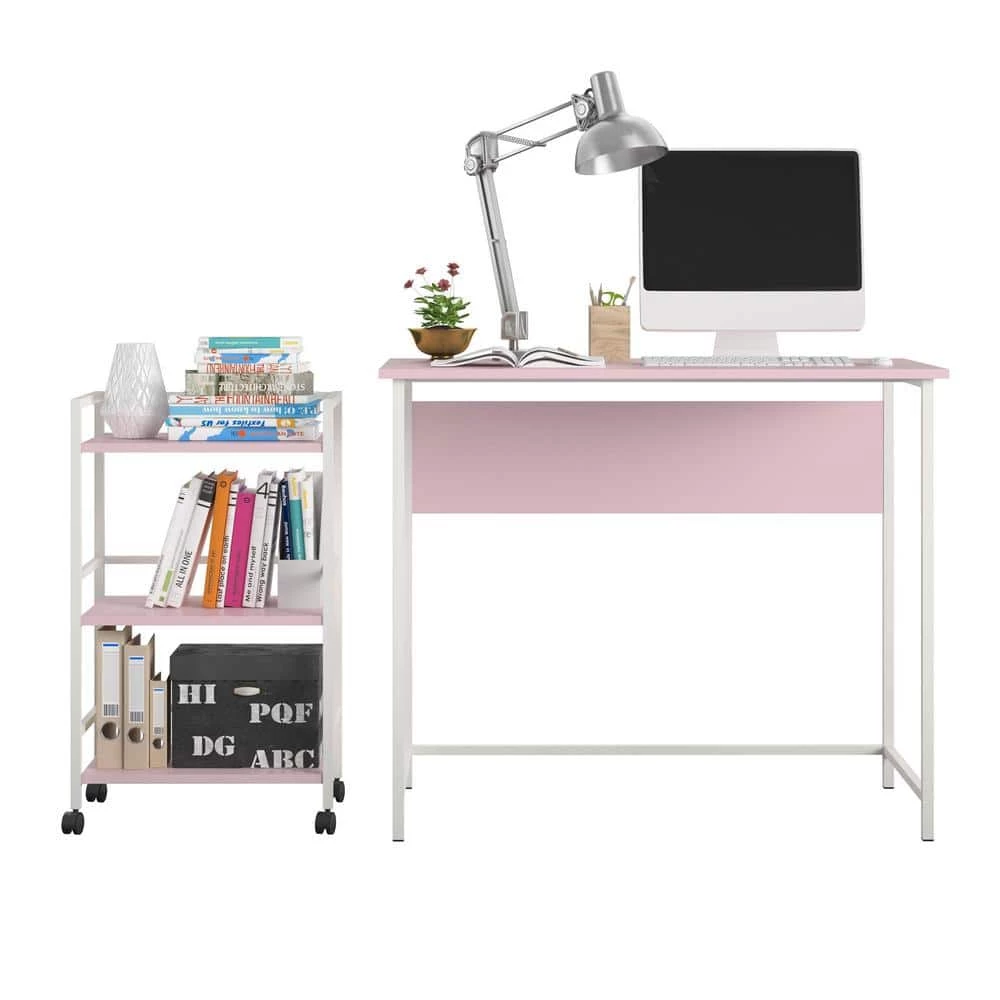 - Desk and rolling cart combo offer storage solution to keep desktop neat and tidy