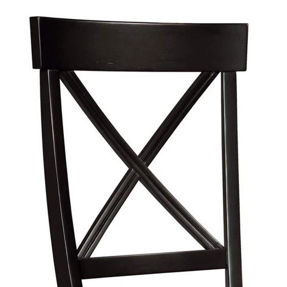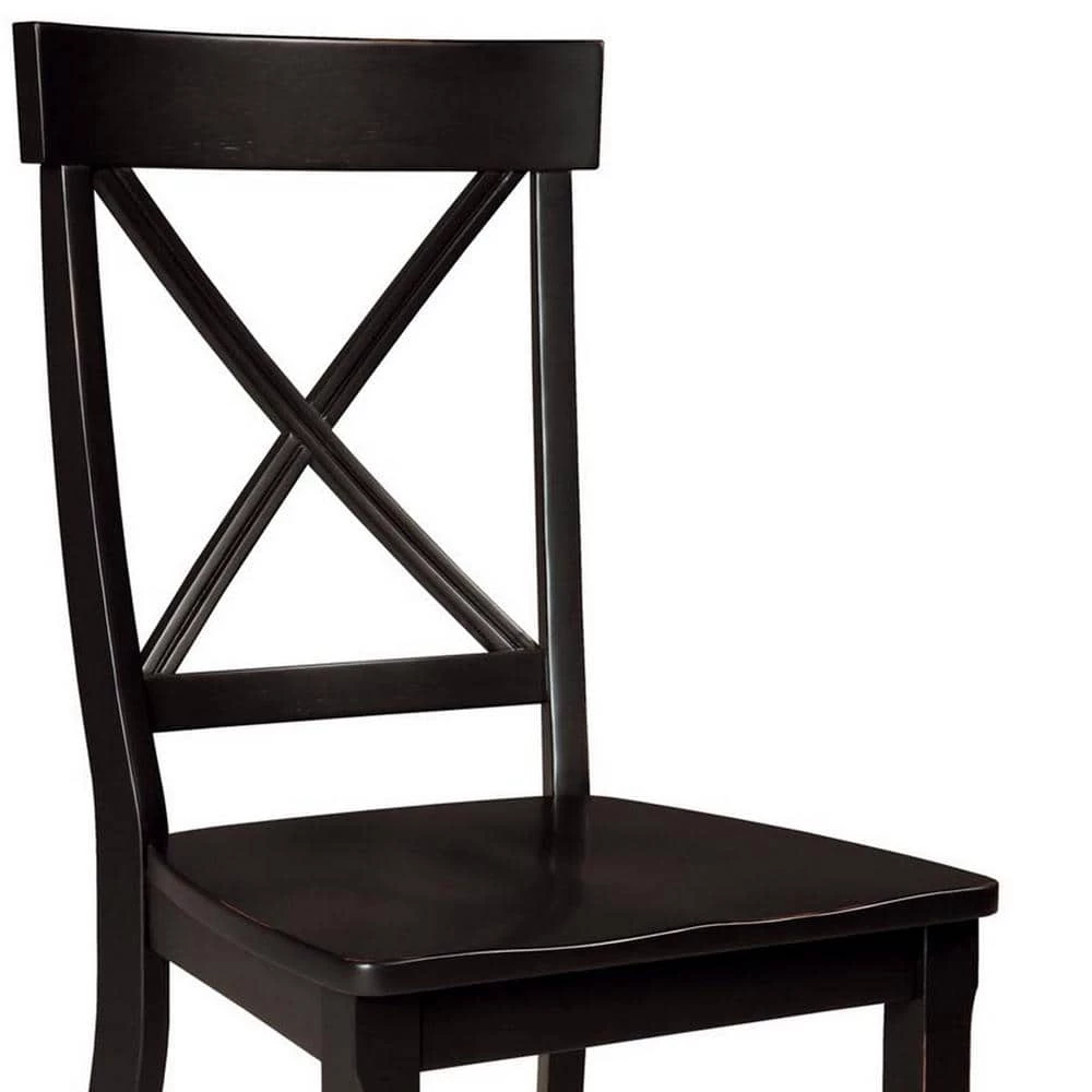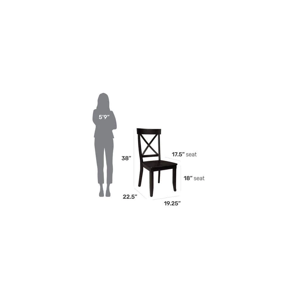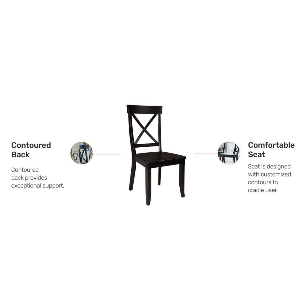 Pull up a couple chairs to have a conversation with a best friend or add a couple more chairs to an existing table and chairs with this Homestyles Blair Chair Set. This pair of dining chairs is accented by an X-back, contoured seat and tapered legs. Each one has an attractive black finish that is easy to match. Whether using as side chairs or pulling up to a table, the comfort and style will last as long as the durable construction.