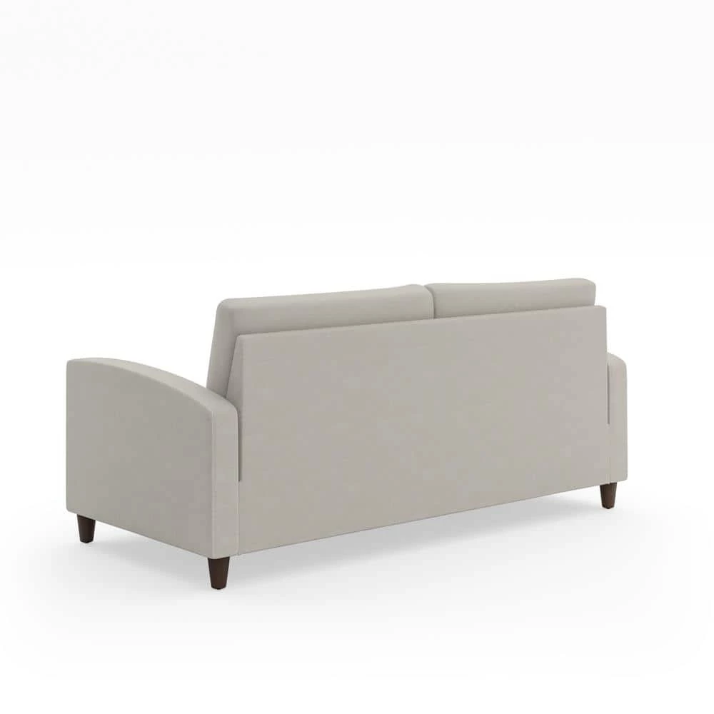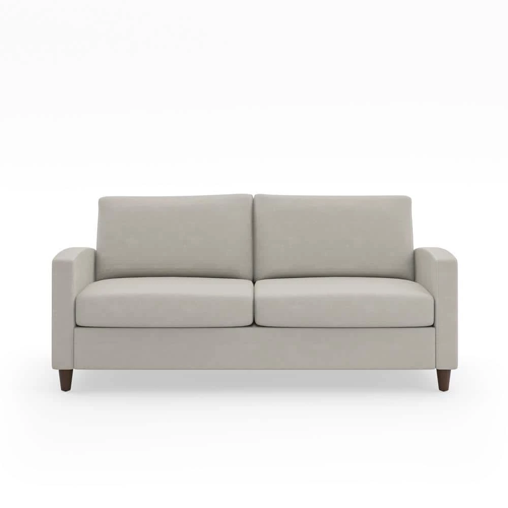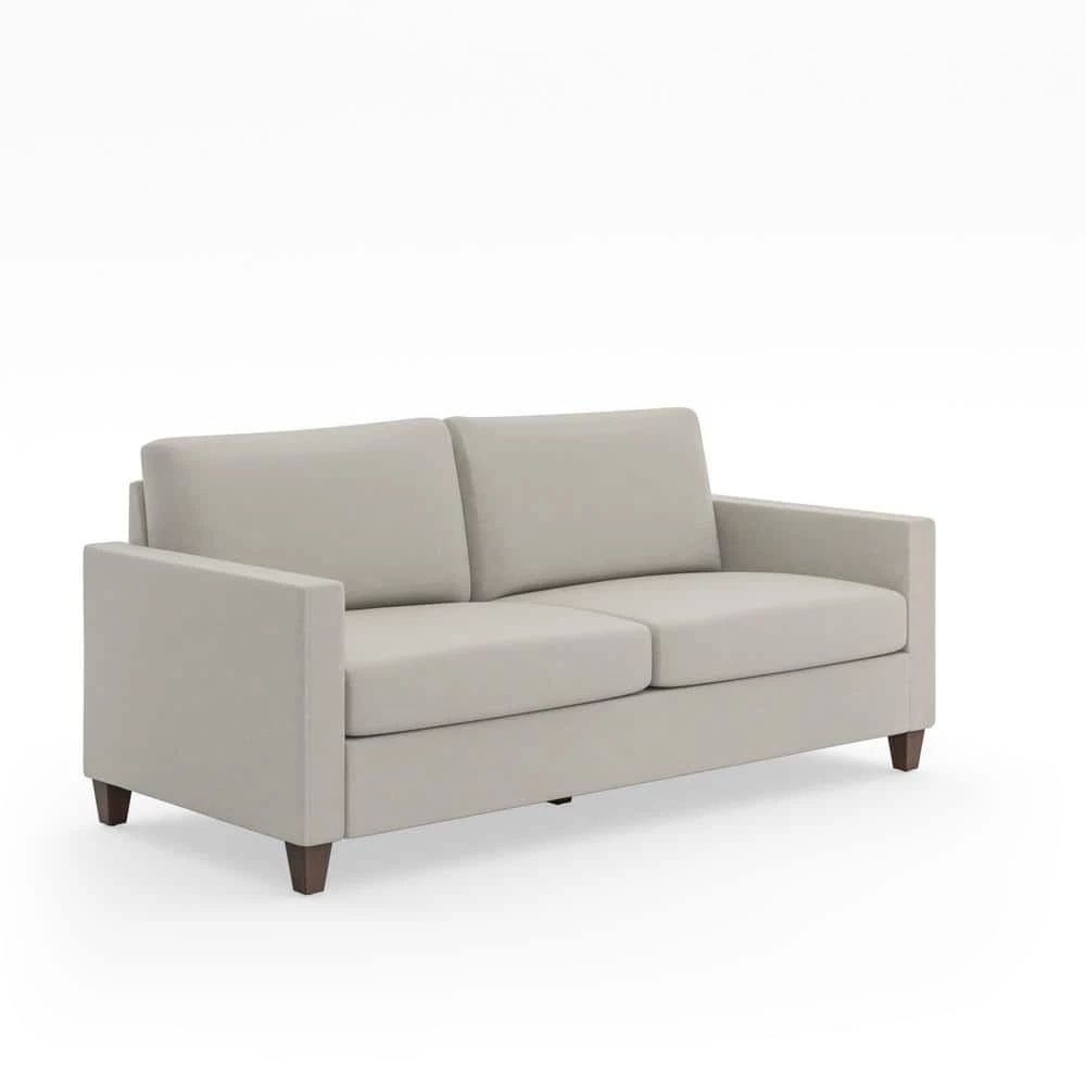 Comfortable plush cushions and a fresh, modern look will make the Blake Sofa the focal point of your living space. Clean lines, thin, contoured arms, and neutral fabric give the design a fresh, modern look. A small footprint makes it the perfect choice for small apartments or homes. And thanks to it’s knock-down design, with back that folds down and removable legs, it’s easy to move into your home and assemble. 31 in. H x 68 in. W x 32 in. D.