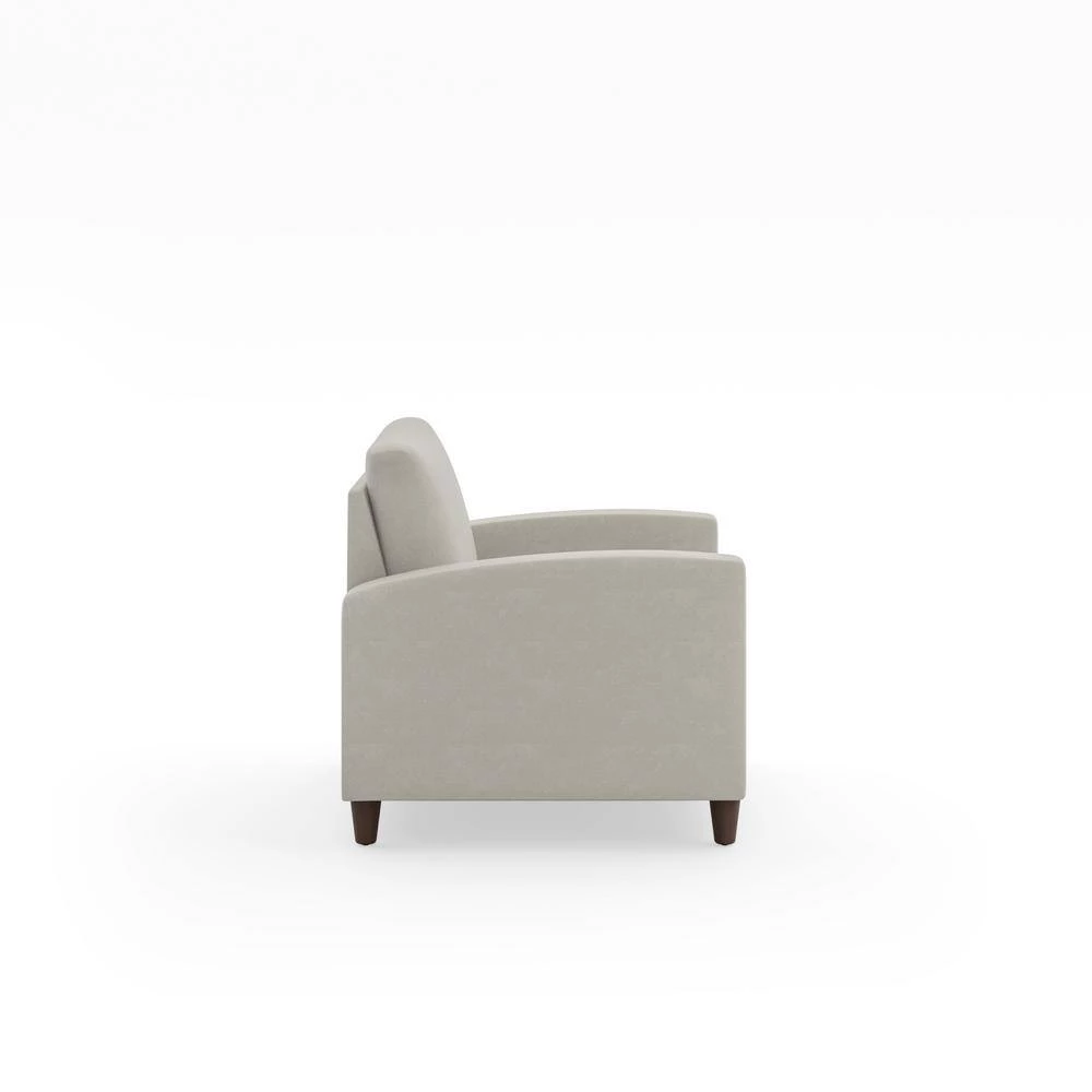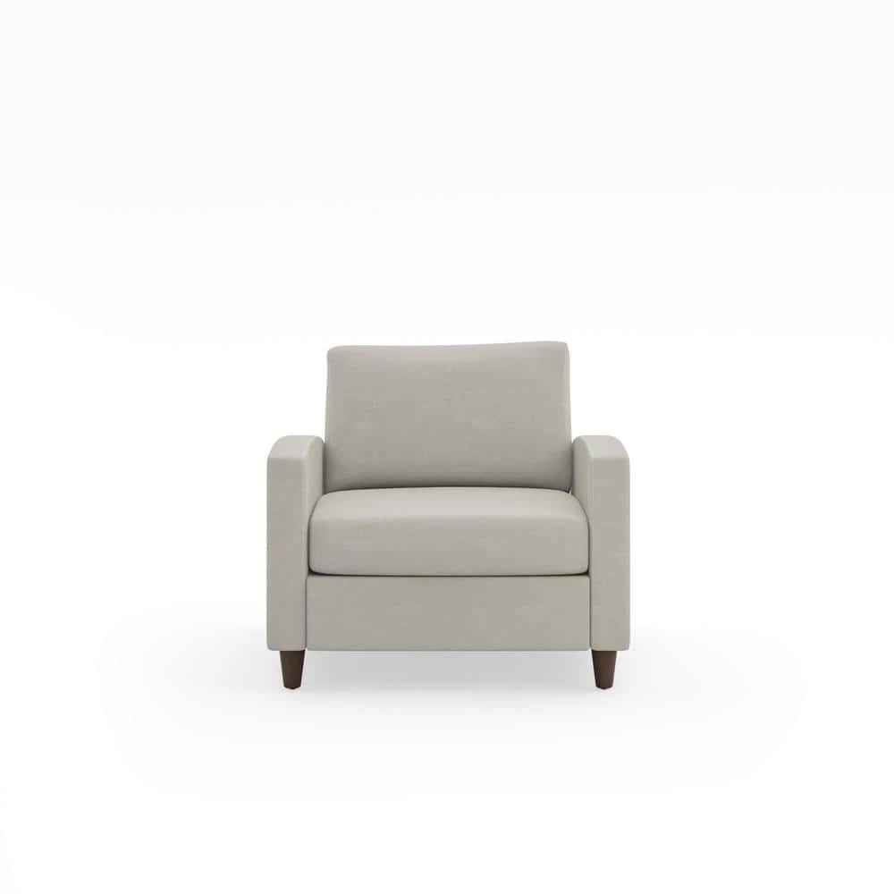 Whether you’re furnishing a-small apartment or refreshing your home decor, the Blake Chair makes it simple to add comfort and style to your space. Cleans lines, thin, contoured arms, and neutral fabric give the design a fresh, modern look. Plush, pillow-back cushions provide superior comfort, while the chair’s knock-down design makes assembly a breeze-no tools required. Have tight hallways and doors to navigate? Simply fold the back down and unscrew the legs. 31 in. H x 34 in. W x 32 in. D.