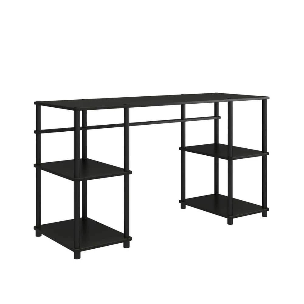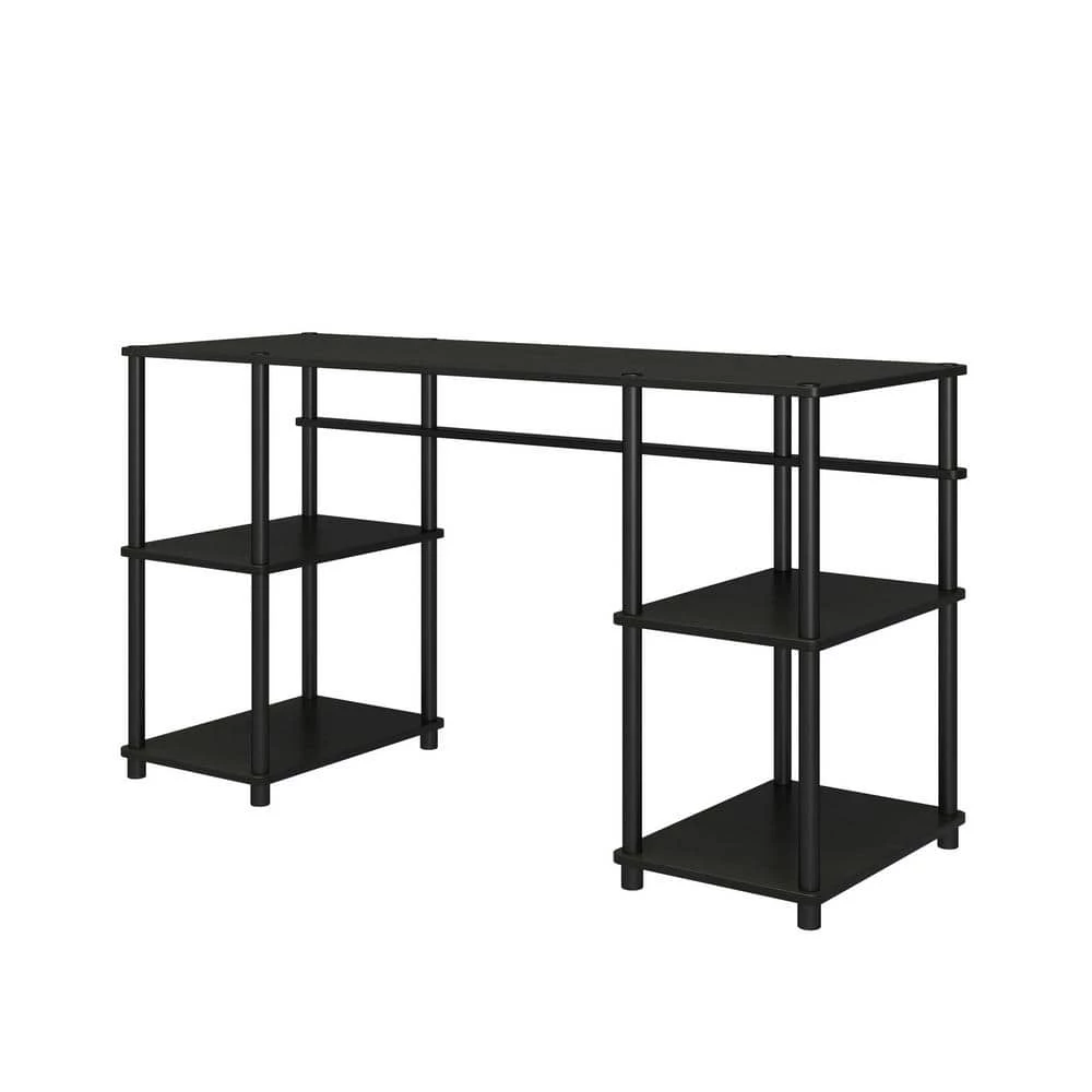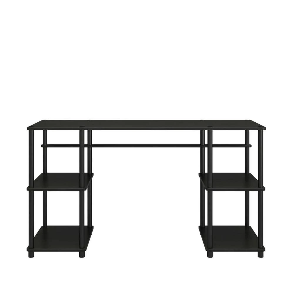 Set up your home office or study space quickly and easily with the Ameriwood Home Crocker Toolless Double Pedestal Computer Desk. Made of laminated particleboard, the black oak woodgrain finish can easily fit into your existing decor. The desktop can accommodate your laptop and monitors while the open shelving is perfect for notebooks, manuals, and extra offices supplies. The simple design goes together without tools making it the perfect solution to work from home or for college dorm rooms. The Computer Desk ships flat to your door and goes together by simply screwing in all the support bars to the shelves and desktop. Once assembled, the Desk measures to be 30.12 in. H x 55.12 in. W x 20.08 in. D.