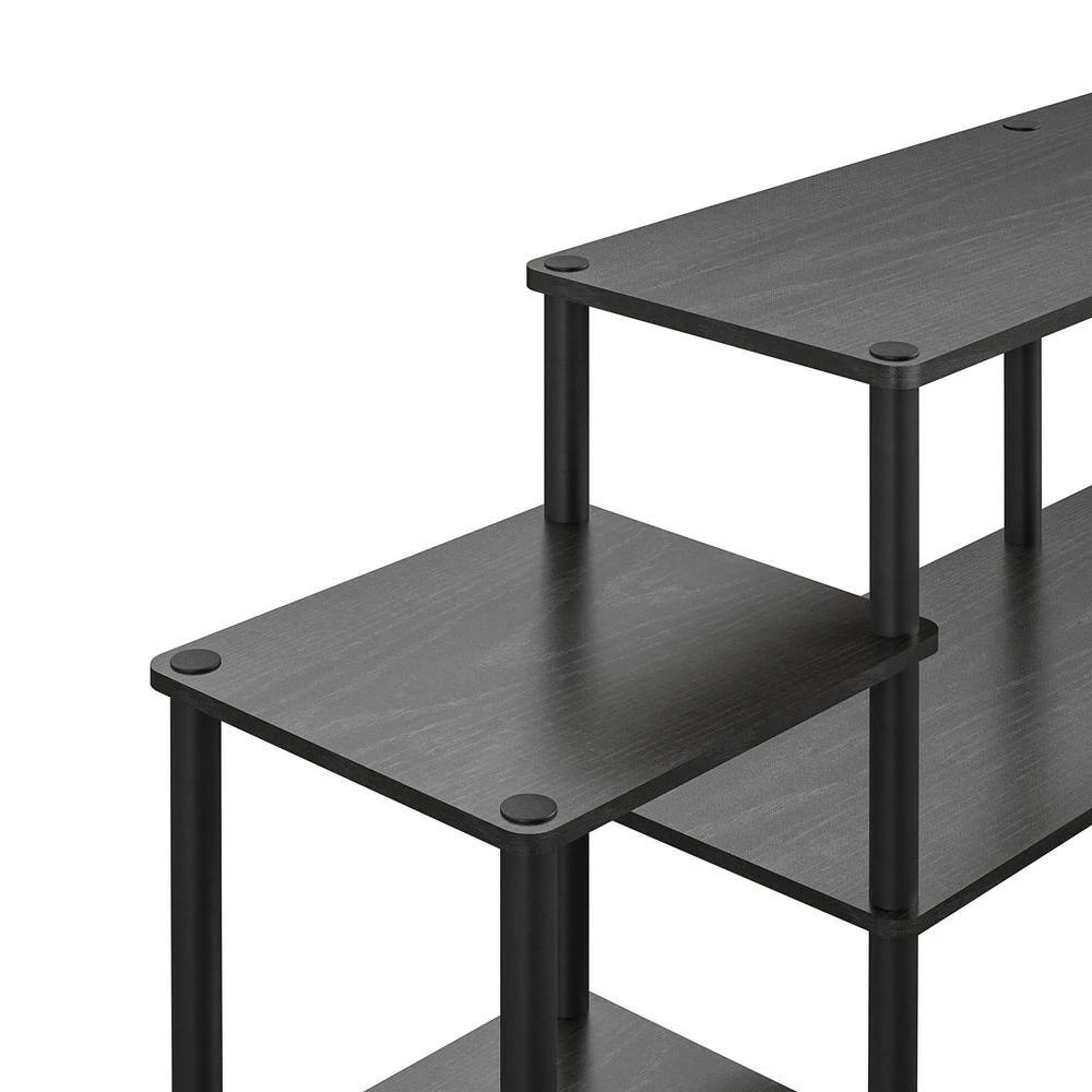 Set up your living room or entertainment space quickly and easily with the Ameriwood Home Crocker Toolless TV Stand. This simple yet sturdy TV Stand can accommodate most TVs up to 50 in. wide or up to 60 lbs. Made of laminated particleboard, the classic black oak woodgrain finish can easily fit into your existing decor. The open shelving allows proper air circulation for your audio and video components and makes it easy to plug in all of your devices. The TV Stand ships flat to your door and goes together by simply screwing in all of the support bars to the shelves. No tools required means you can be watching your favorite shows or sports in no time. Once assembled, the TV Stand measures to be 22.95 in. H x 76.38 in. W x 14.41 in. D.