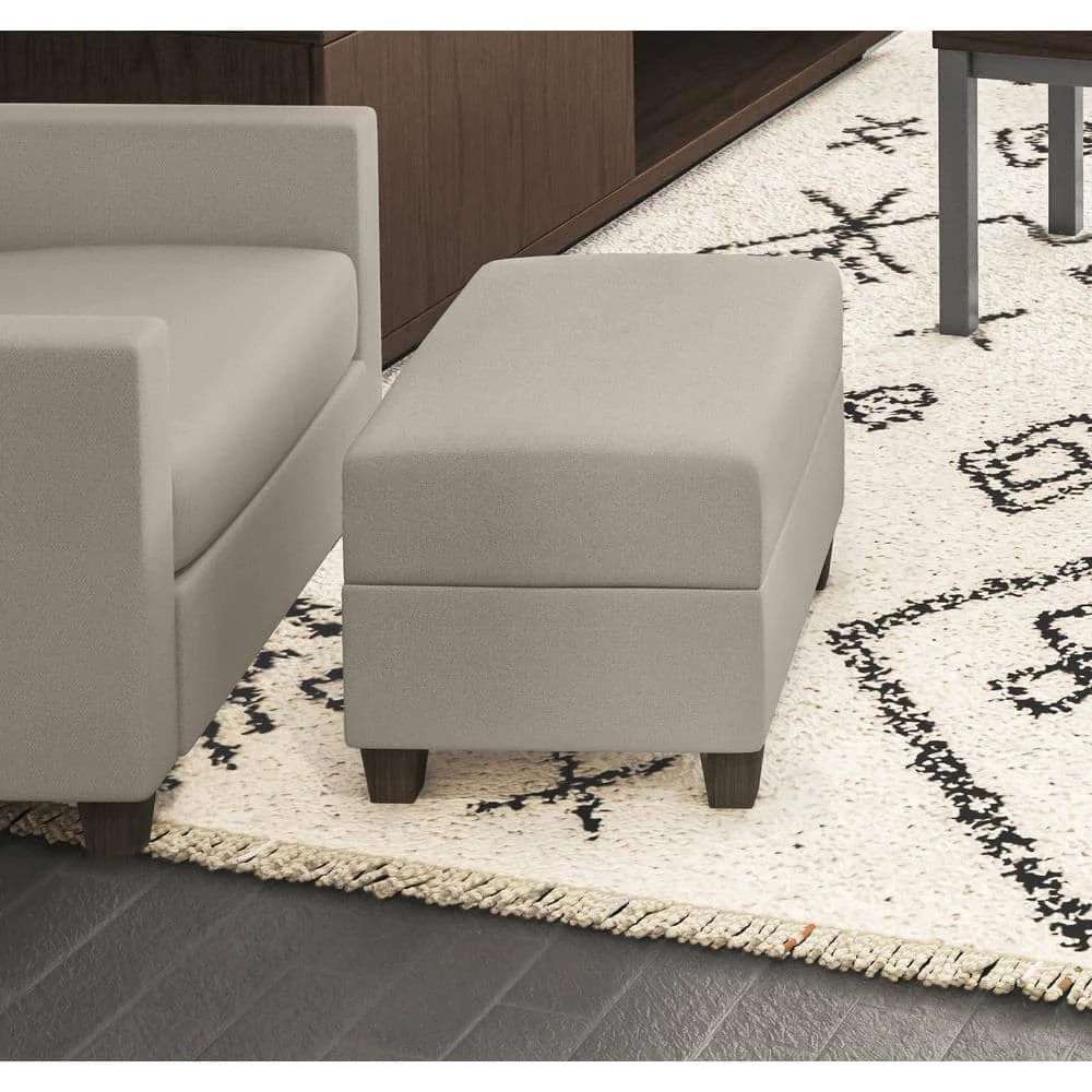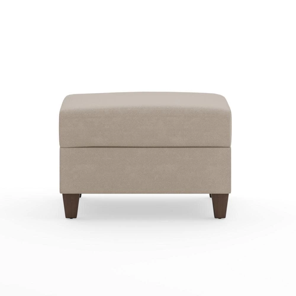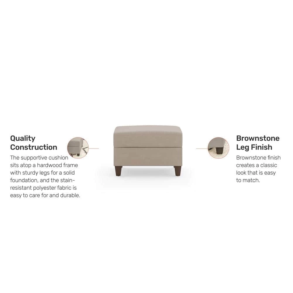 On its own or paired with the Dylan Arm Chair, you can choose to put up your feet or take a seat with this Homestyles Dylan Ottoman. The supportive cushion sits atop a hardwood frame with sturdy legs for a solid foundation, and the stain-resistant polyester fabric is easy to care for and durable. When you want to add a little extra comfort to your seating arrangement, look no further than the Dylan Ottoman.