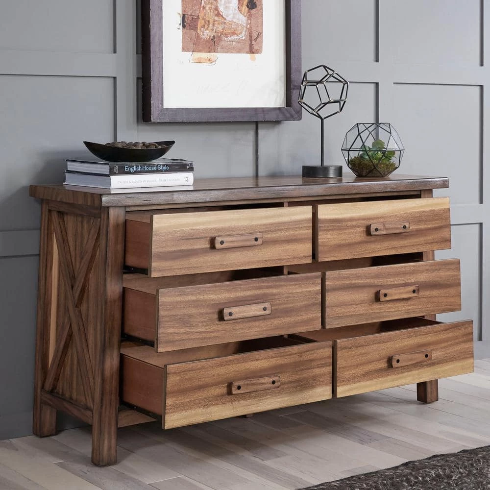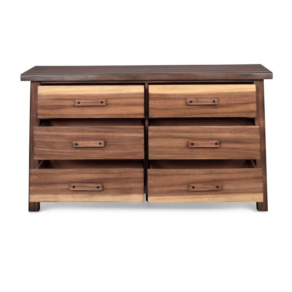 Inspired by the tropical rain forest, the Forest Retreat Dresser captures the alluring look of a live edge design for a natural-looking rugged elegance. Crafted from tropical grained wood veneers over engineered woods, this piece is finished with a natural teak look that provides the dramatic light to dark grain pattern. Simple yet striking, this dresser complements a wide array of styles ranging from modern rustic to relaxed retreat. Part of a whole home solution, the Forest Retreat Dresser transforms your space into an inviting haven.