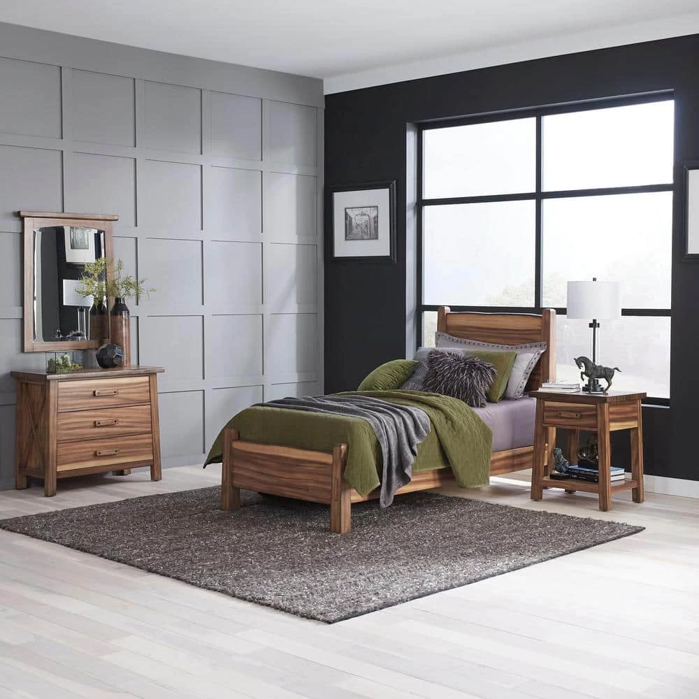Inspired by the tropical rain forest, the Forest Retreat Nightstand captures the alluring look of a live edge design for a natural-looking rugged elegance. Crafted from tropical grained wood veneers over engineered woods, this piece is finished with a natural teak look that provides the dramatic light to dark grain pattern. Simple yet striking, this nightstand complements a wide array of styles ranging from modern rustic to relaxed retreat. Part of a whole home solution, the Forest Retreat nightstand transforms your space into an inviting haven.