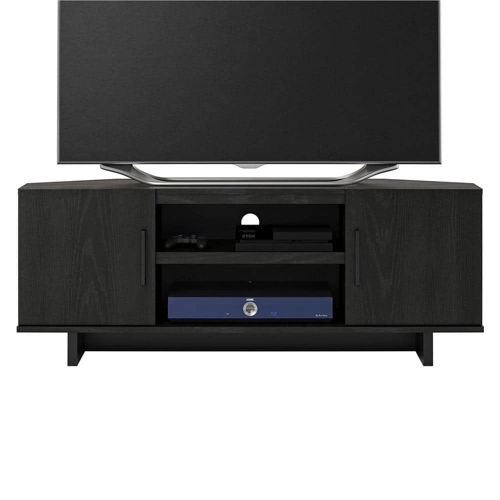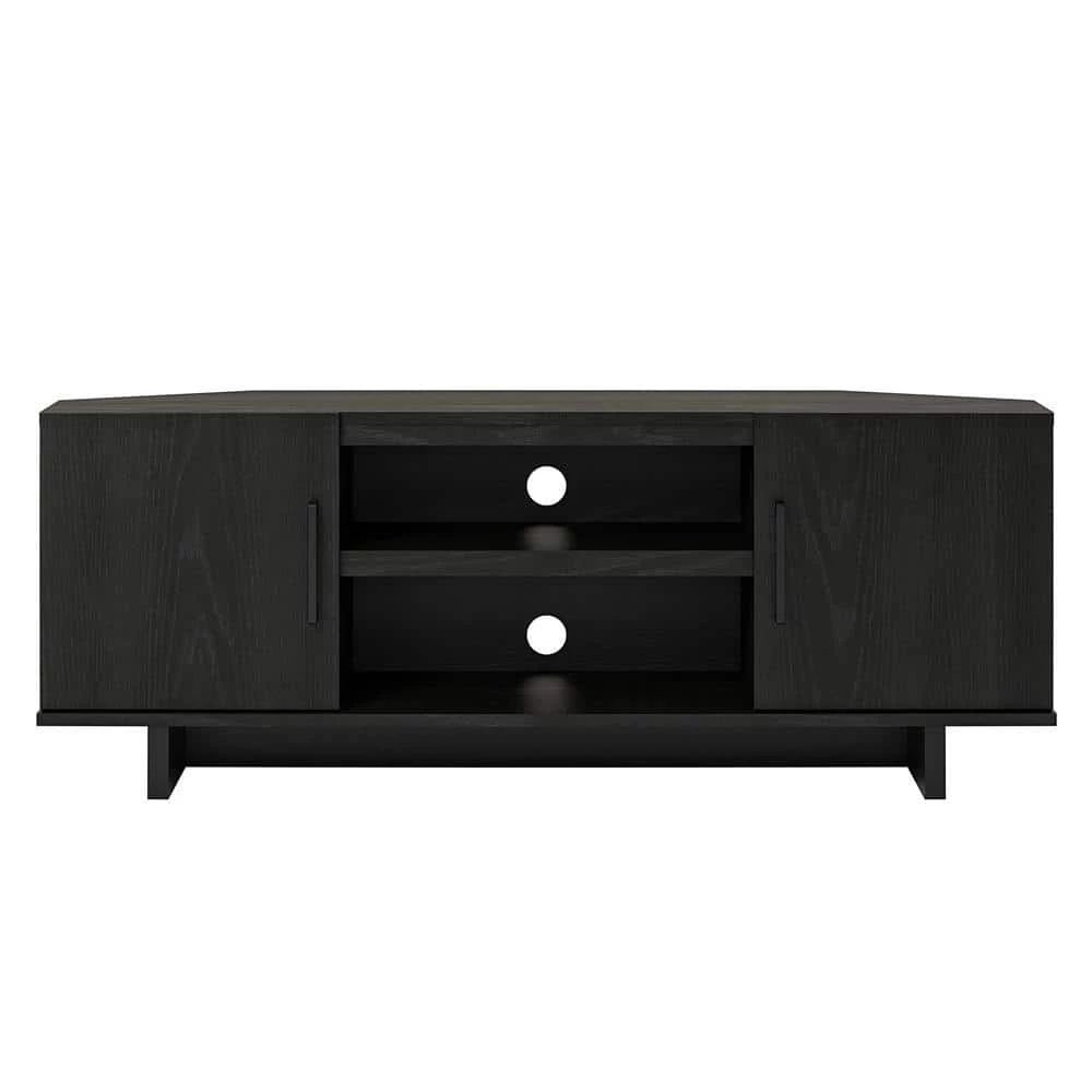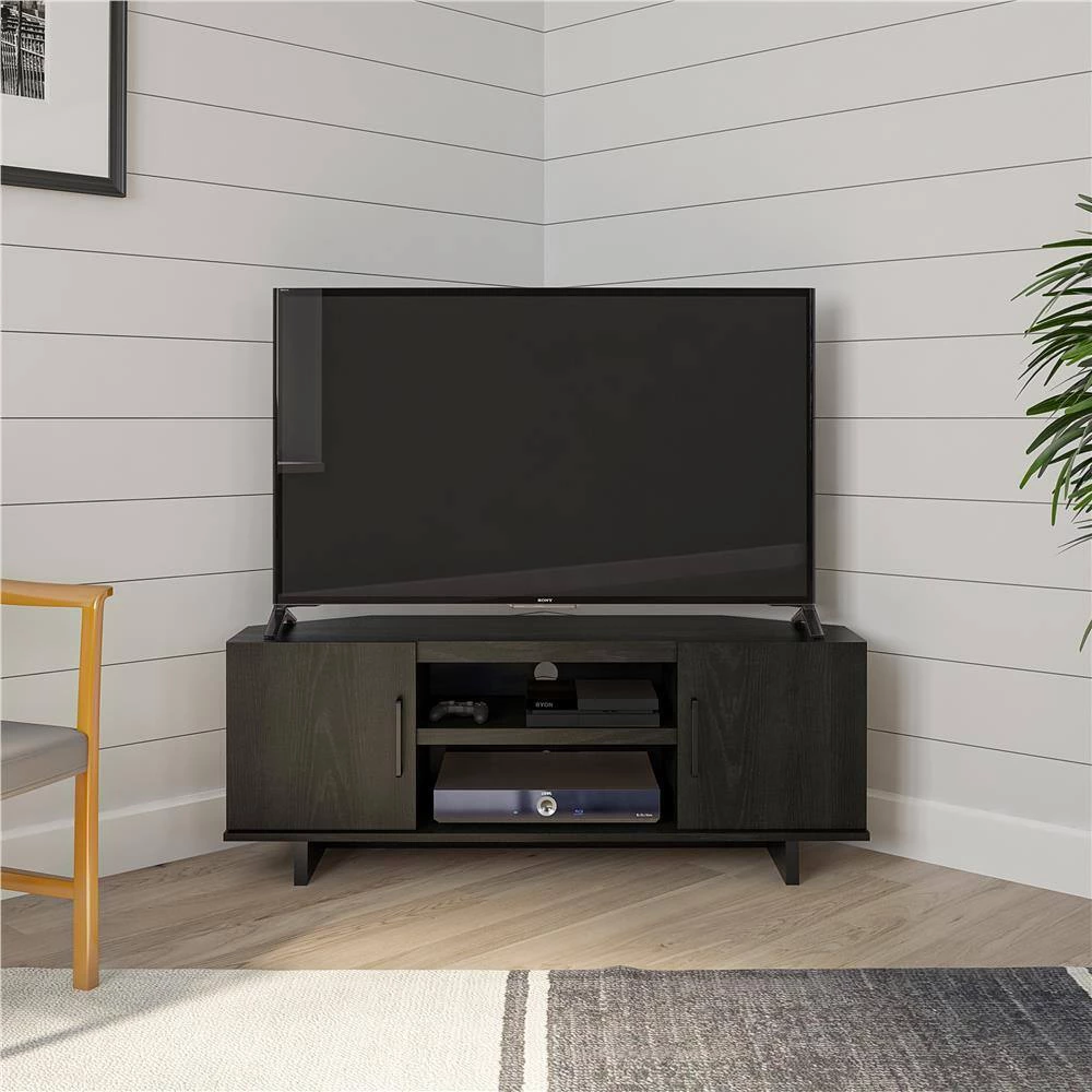 - Watch movies or your favorite TV shows in style with the Ameriwood Home Julia Corner TV Stand for TVs up to 50″ wide or 60 lbs.