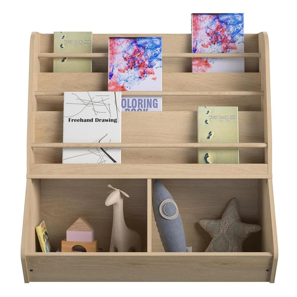 Don’t fight with all the clutter of a child’s room, simply store away their toys and games in the Ameriwood Home Lauren Book and Toy Storage. This Toy Storage is great for storing stuffed animals, toys and books and includes curved corners for your child’s safety. Keep everything organized in the 2 large open compartments and display their favorite books on the top 3 shelves for easy access. Each bookshelf features a rod to keep books in place and allow easy access for kids. Made of laminated particleboard, the light brown woodgrain finish pairs with both boys and girls rooms. The Book and Toy Storage meets the CPSIA Juvenile testing requirements to ensure your child’s safety. The Toy Storage ships flat to your door and requires assembly upon opening. 2 adults are recommended to assemble. Once assembled, the Toy Storage measures to be 36.3 in. H x 35.6 in. W x 173.3 in. D.