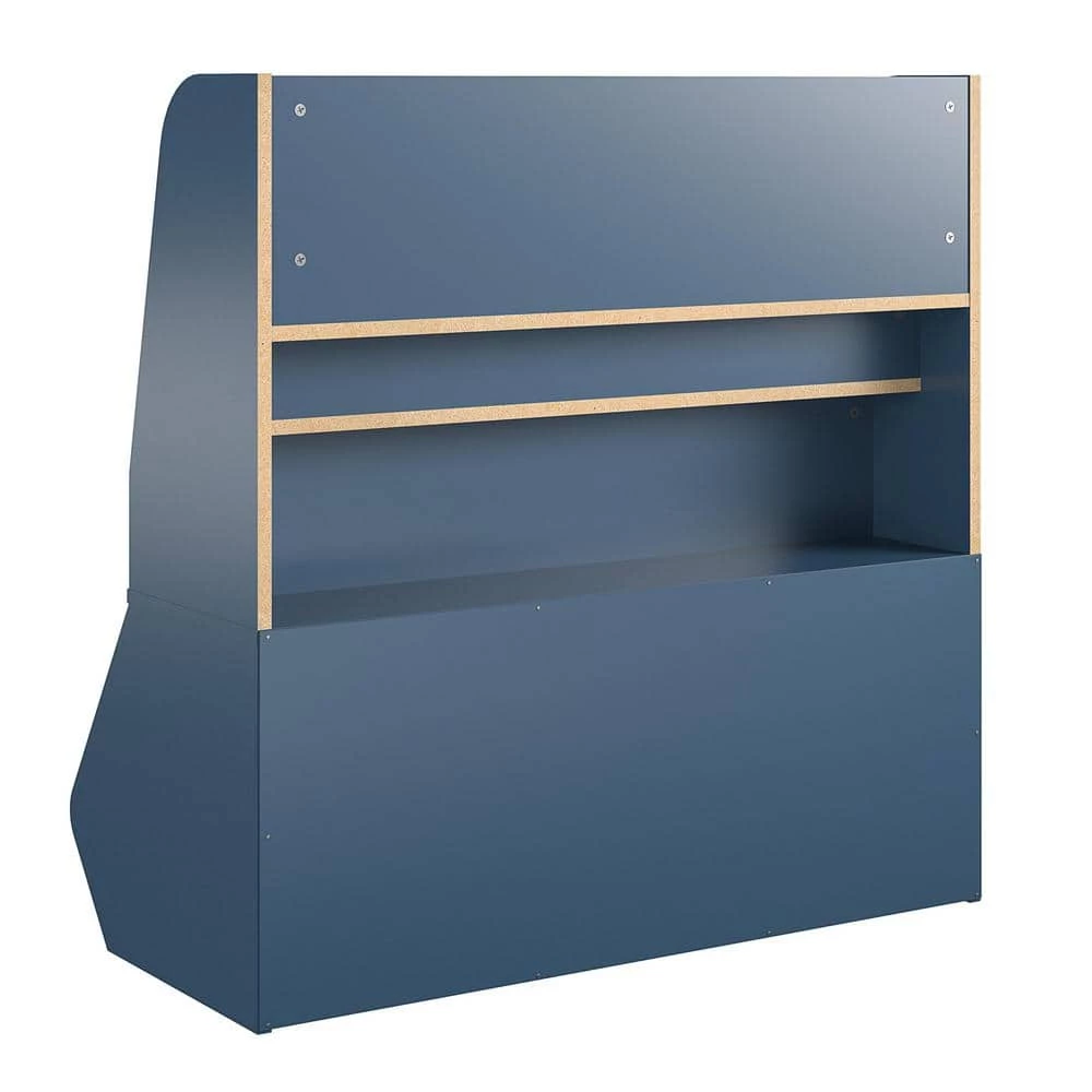 Don’t fight with all the clutter of a child’s room, simply store away their toys and games in the Ameriwood Home Lauren Book and Toy Storage. This Toy Storage is great for storing stuffed animals, toys and books and includes curved corners for your child’s safety. Keep everything organized in the 2 large open compartments and display their favorite books on the top 3 shelves for easy access. Each bookshelf features a rod to keep books in place and allow easy access for kids. Made of laminated particleboard, the beautiful dark blue finish pairs with both boys and girls rooms. The Book and Toy Storage meets the CPSIA Juvenile testing requirements to ensure your child’s safety. The Toy Storage ships flat to your door and requires assembly upon opening. 2 adults are recommended to assemble. Once assembled, the Toy Storage measures to be 36.3 in. H x 35.6 in. W x 173.3 in. D.