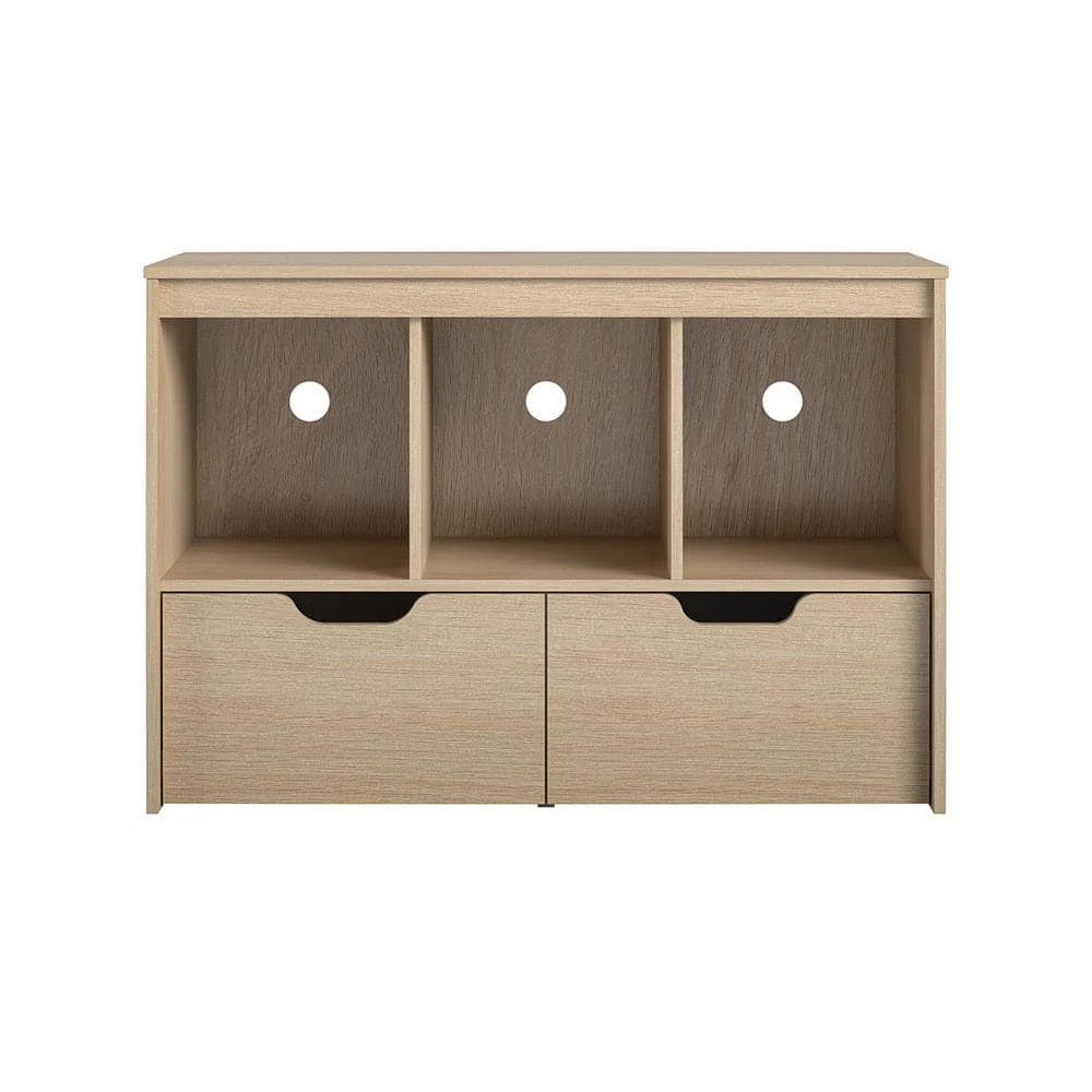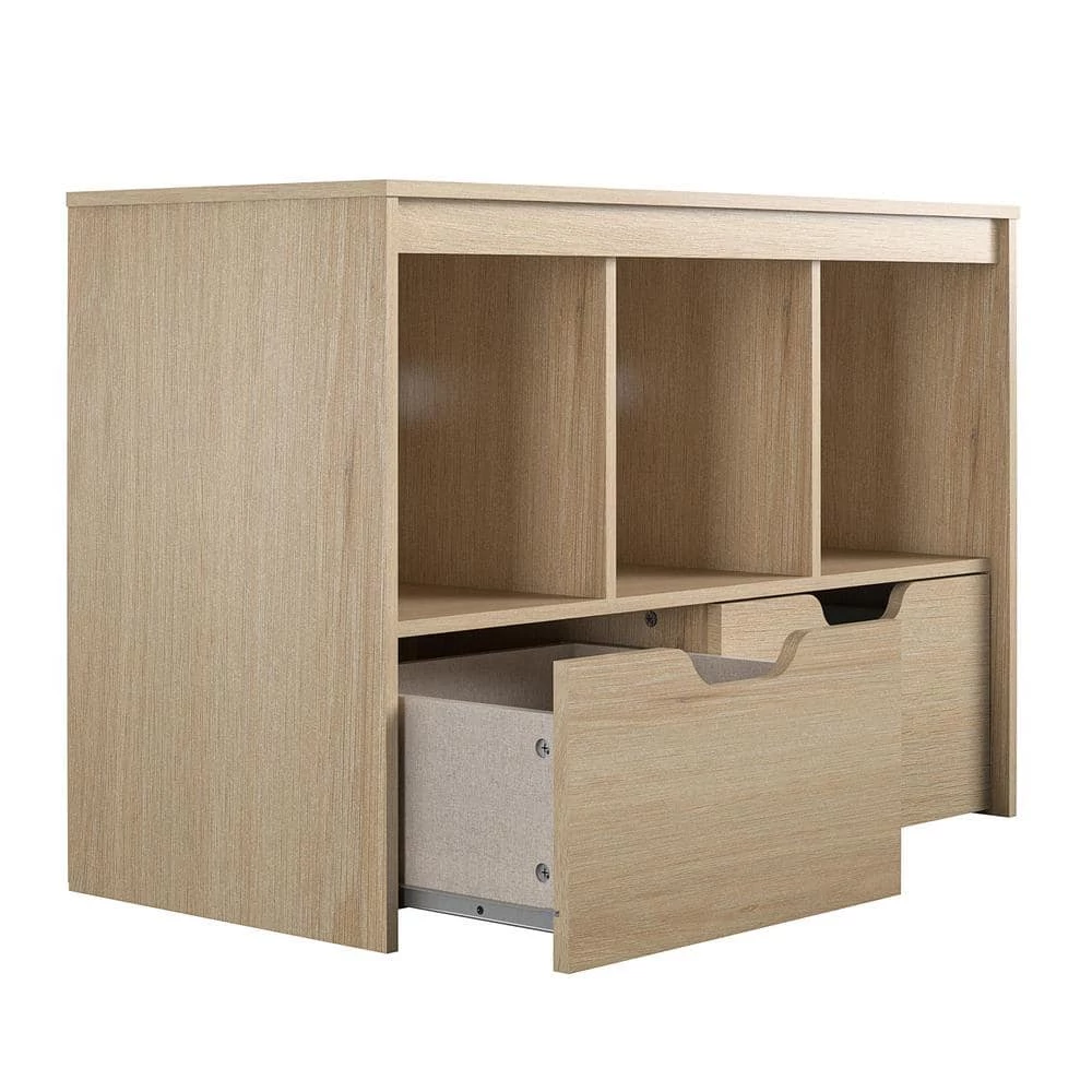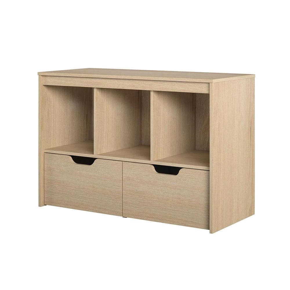 Don’t fight with all the clutter of a child’s room, simply store away their toys and games in the Ameriwood Home Lauren Kids Storage Cube with Drawers. This Storage Cube is great for storing stuffed animals, toys and books. Keep everything organized in the 3 open compartments and store away games, electronics, or even shoes in the bottom 2 drawers. The drawers feature a no-handle cutout for a clean look. Made of laminated particleboard, the light brown woodgrain finish pairs with both boys and girls rooms. The Storage Cube meets the CPSIA Juvenile testing requirements to ensure your child’s safety. The Storage Cube ships flat to your door and requires assembly upon opening. Two adults are recommended to assemble. Once assembled, the Storage Cube measures to be 24.2 in. H x 35.6 in. W x 15.67 in. D.