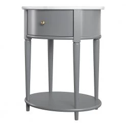 Abelia 21.6 in. Black with Faux Marble Top Round End Table with Drawer and Shelf by Ameriwood Home