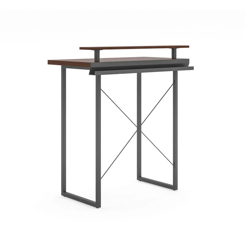 Set yourself up with a fully productive work environment with this Homestyles Merge Standing Height Table Desk with Monitor Stand and Storage Pedestal. This 2-piece set gives you the workspace you need and the organizational solution to keep that space tidy. The light scale frame gives both the desk and the storage unit a minimalist appeal, and the standing height desk top supports a healthier way of working. The lacquer top coat protects the finish and creates totally worry-free ownership.