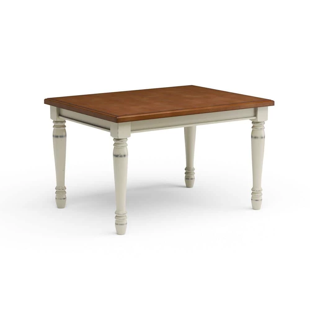 The Monarch Rectangular Dining Table by Home Styles blends upscale design with functionality. This Stylish dining table blends hardwood solids, and engineered wood, and veneers with an affluent, rubbed white and nine-step oak finish. The Monarch Dining Table projects striking style with sophisticated solid wood turned legs. Perfect for any dining room large or small.