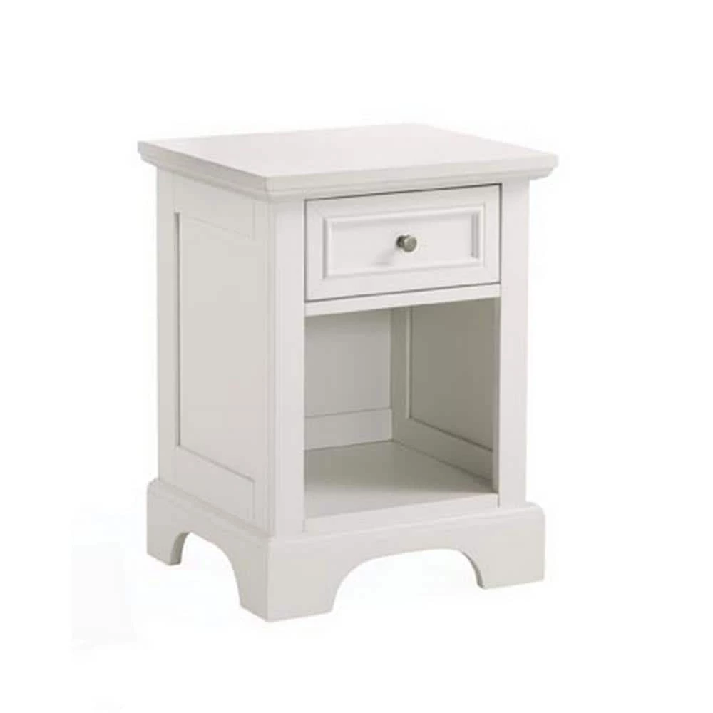 Home Styles Naples Queen Headboard, Night Stand, and Chest are constructed of poplar hardwood and engineered wood with a rich white finish. Headboard features include raised panels on the headboard. Headboard will fit most Queen bed frames. Item Size: 64.75 in. W x 2.5 in. D x 52 in. H. Night Stand features include a storage drawer that measures 10.75 in. W x 10.75 in. D x 4 in. H, and open storage area that measures 12 in. W x 14 in. D x 11.5 in. H. Item measures: 18w 16d 24h. Chest features include four large drawers. Top drawer measures 28 in. W x 13 in. D x 2 in. H. The remaining drawers measure 28 in. W x 13 in. D x 6.5 in. H. Item measures: 36 in. W x 16.5 in. D 36 in. H.