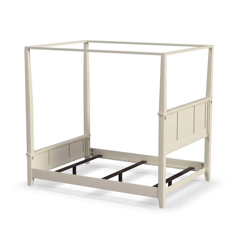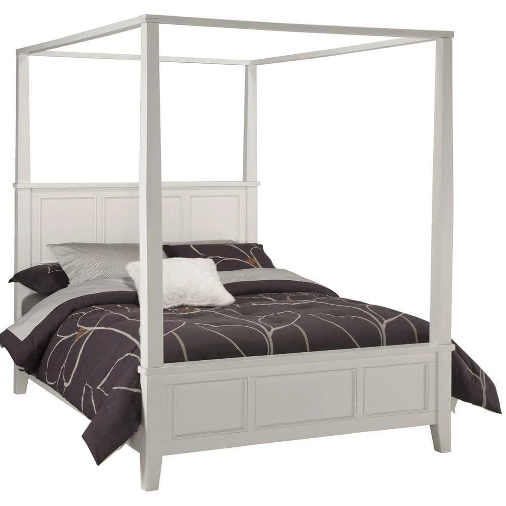 Unadorned details such as the straight and curved lines, and slightly flared legs create the Naples Queen Canopy Bed by Home Styles. Bed is constructed of hardwood solids and engineered wood. Other features include raised panels on the headboard and footboard.