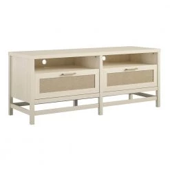 Leeland 58.4 in. Ivory Oak and Faux Rattan TV Stand for TVs up to 60 in. by Ameriwood Home